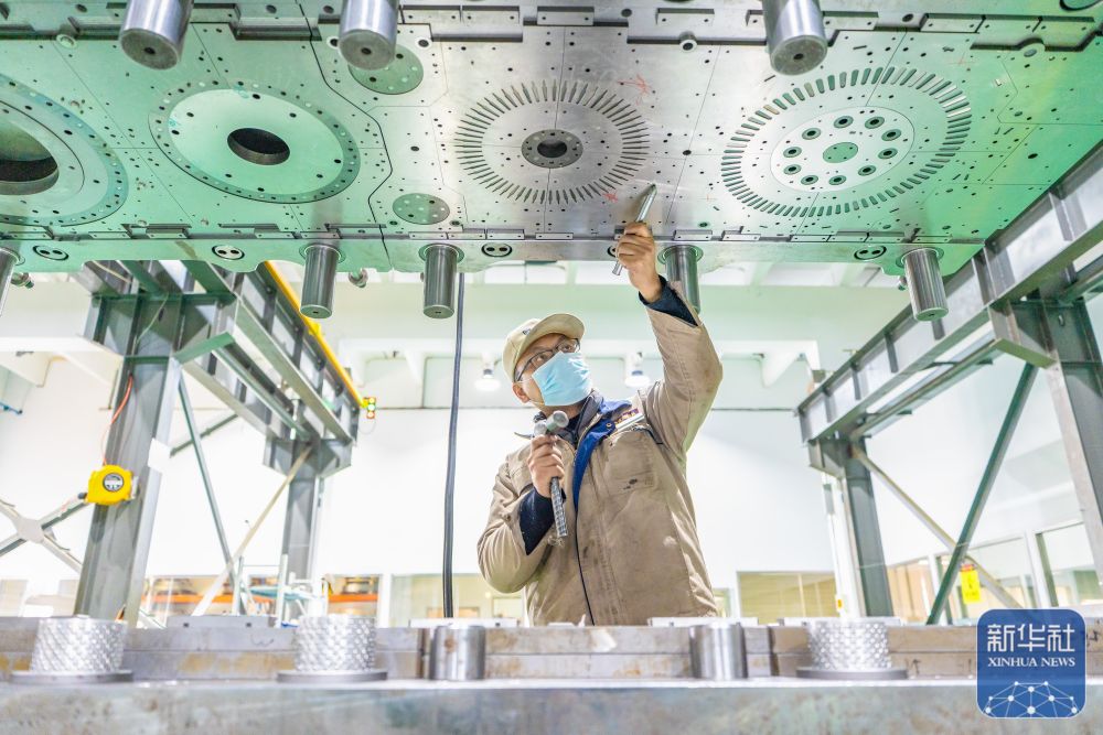 ↑ 12月15日,在位于江蘇省南通市通州區興仁鎮的江蘇富松模具科技有限公司車間內,工人趕制模具產品訂單。新華社發(翟慧勇攝)