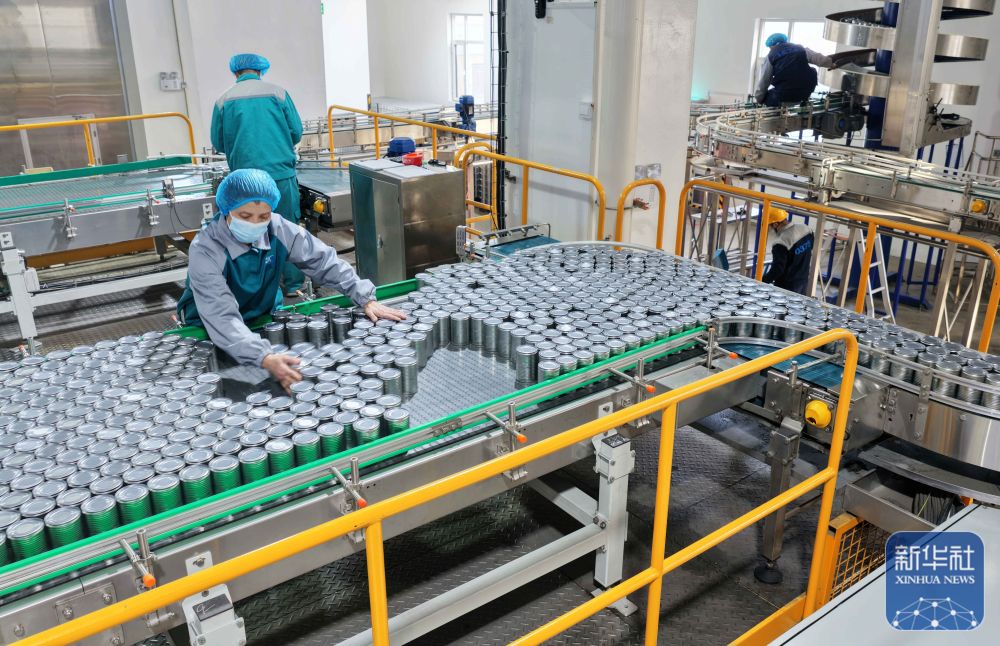 ↑ 12月15日,工人在山東省臨沂市沂南縣銅井鎮寵物食品產業園寵物食品生產線忙碌。新華社發(王彥冰攝)