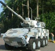 由臺軍“聯(lián)勤兵整中心”研發(fā)的“云豹”八輪裝甲車,2005年1月正式命名,今年開始進行小批量產(chǎn)。(高大林)