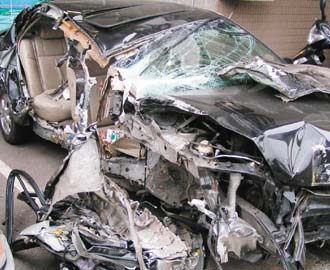 臺灣一男子涉嫌酒后開車,造成兩死三傷,肇事車輛全毀。(聯合報圖)