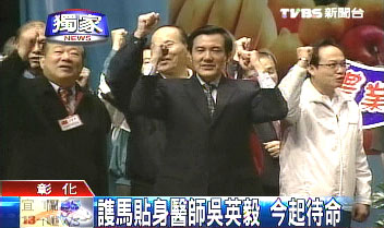 中國臺灣網2月2日消息 據臺灣TVBS電視臺報道,臺灣2008“大選”候選人馬謝陣營開始大拼場,在臺當局安全單位人員進駐后,要求馬謝雙方各自提供隨行醫療人員,馬英九身邊的貼身醫師,今天首度亮相,他就是和馬英九認識30多年的前國民黨“立委”吳英毅。