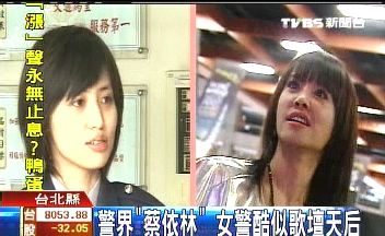 據臺灣TVBS電視臺報道,雖然使出擒拿術對付色狼,或是逮捕持有刀械的歹徒,26歲的女警蔡宜蒨都很專業,但她亮眼俏麗的外表,更讓她迅速爆紅,直挺的鼻子、微厚的嘴唇,尤其是笑開來,跟蔡依林還真的極為相似,甚至被學長們昵稱是“警界的蔡依林”。