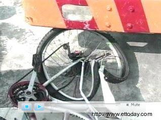 狠心貨車撞單車女童,不理哭喊拖1公里,自行車嚴(yán)重變形。來源:臺(tái)灣東森新聞