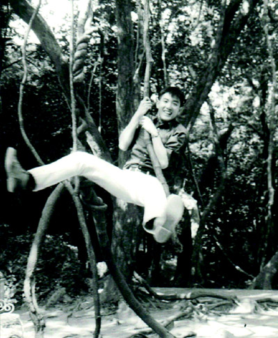 好動中學(xué)生:高中時代的馬英九,出游時留下了這張蕩樹藤的照片,難得展現(xiàn)俏皮的一面。