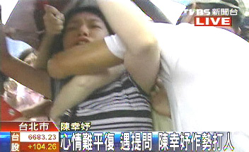 陳幸妤日前在上班途中情緒失控,要拍打媒體鏡頭、追打記者。臺(tái)灣TVBS資料圖