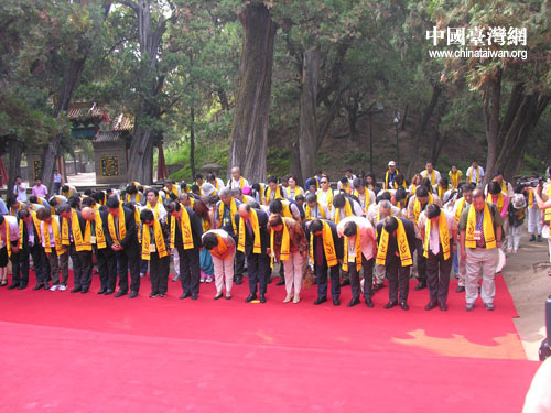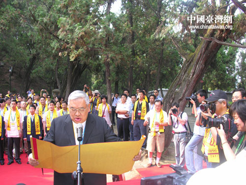 中國臺灣網(wǎng)7月19日陜西黃陵縣消息 7月19日上午,參加“情系長安——兩岸文化聯(lián)誼行”活動的160余位兩岸文化界人士,在黃帝陵恭祭軒轅黃帝。臺灣嘉賓團顧問、臺灣世新大學教授、中華民俗藝術(shù)基金會董事長曾永義恭讀祭文。以下為祭文全文。