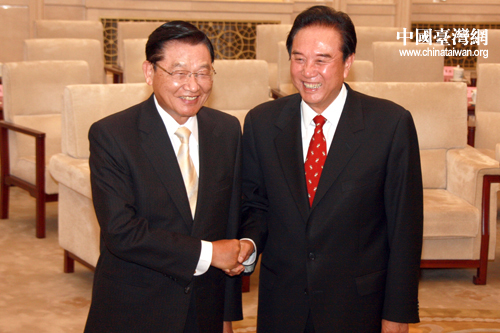 中國臺灣網(wǎng)10月28日北京消息 海協(xié)會會長陳云林28日下午在人民大會堂會見了臺灣;鶗麻L江丙坤率領(lǐng)的海基會新聞交流團(tuán)一行。(中國臺灣網(wǎng) 田云鵬 圖/文)
