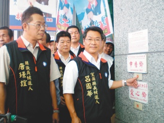 宜蘭縣長候選人呂國華昨天按鈴控告對手林聰賢與輔選大將陳長偉,涉嫌違反“選罷法”,附帶民事賠償1億元。來源:臺(tái)灣《聯(lián)合報(bào)》