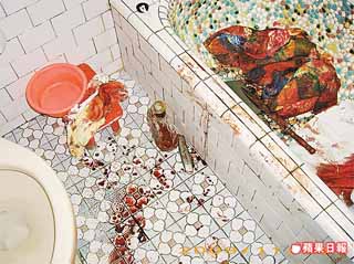 蘇江河打死妻子后,在浴室自殘,浴缸內(nèi)留下大灘血跡。 來(lái)源:臺(tái)灣《蘋(píng)果日?qǐng)?bào)》