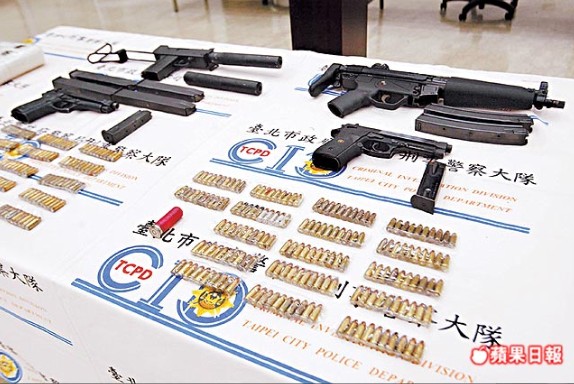 據臺灣《蘋果日報》報道,臺北市警方昨天前往林森北路一處套房搜索,當場逮捕竹聯幫地堂“地北會”會長黃健嘉、藍姓小弟及其楊姓女友等人,并搜出臺軍特勤人員使用的美制制式M10沖鋒槍及德制制式MP5A3沖鋒槍各一把,另有美制和巴西制92制式手槍、325發子彈,火力相當強大。