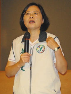民進(jìn)黨主席蔡英文昨天到宜蘭與黨員座談。(圖片來源:臺灣《聯(lián)合報》)
