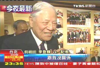 中國臺灣網7月22日消息 綜合臺灣媒體報道,陳致中陷入召妓疑云的風暴,還發誓說如果有其事就要退選,昨天晚上前臺灣地區領導人李登輝出席一場友人的餐敘,被在場媒體詢問到對此事的看法,李登輝:“這種事情我都不管,他(陳致中)說如果真的有找小姐,就要退選;如果他退選,跟我沒關系。”