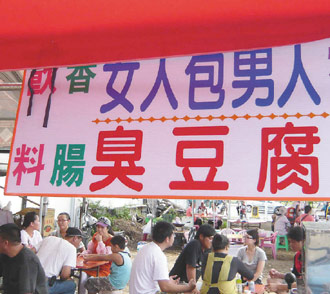 “女人包男人”的攤位招牌,吸引顧客上門(mén)。圖片來(lái)源:臺(tái)灣《聯(lián)合報(bào)》