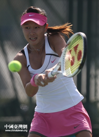 張凱貞雙手反拍回球。(中國臺灣網 鐘寶華 攝)