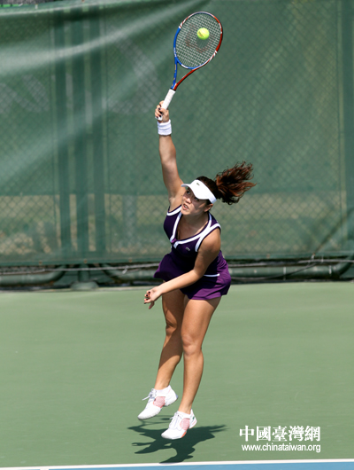 中華臺北隊女網選手張凱貞發球瞬間。(中國臺灣網 鐘寶華 攝)