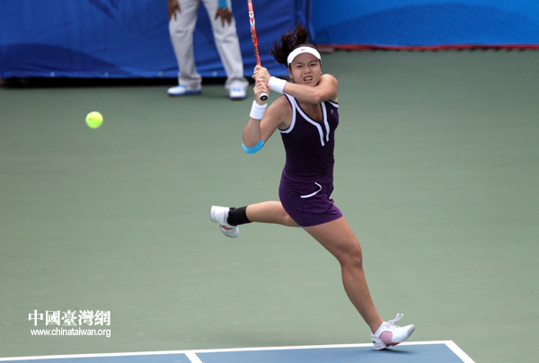 詹詠然奮力回球(中國(guó)臺(tái)灣網(wǎng) 鐘寶華 攝)