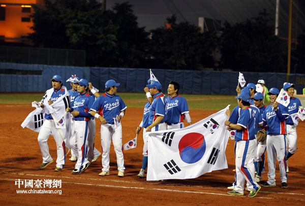 亞運棒球決賽,韓國隊獲得冠軍。(中國臺灣網(wǎng) 鐘寶華 攝)