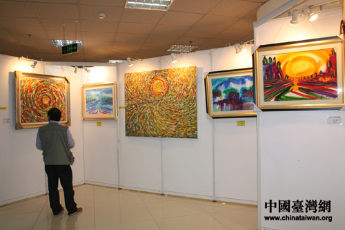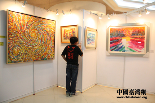 觀眾駐足欣賞畫作。(中國臺灣網 王怡然)
