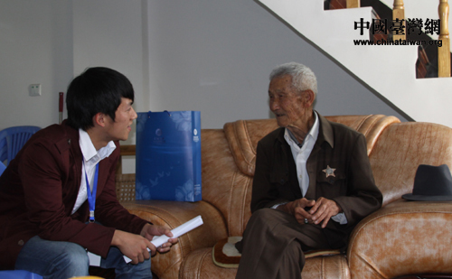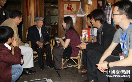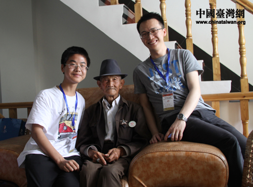 路珍樓老兵向羅海蕓等同學講述當年的抗日故事(中國臺灣網 楊永青 攝) 中國宋慶齡基金會李寧秘書長向路珍樓老兵贈送孫中山、宋慶齡郵冊(中國臺灣網 楊永青 攝) 湖南小老鄉周舟圍坐在黃有強老兵旁(中國臺灣網 楊永青 攝) 廖廣南(右)和李夢帆(左)與黃有強老兵合影(中國臺灣網 楊永青 攝)