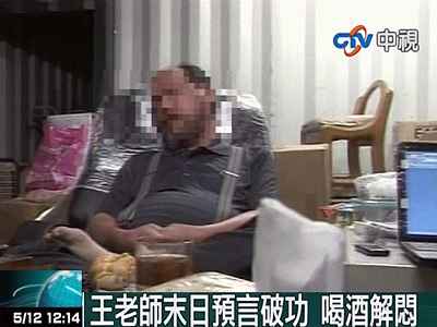 末日預(yù)言成末日謊言,“王老師”喝酒解悶。圖片來源:臺灣今日新聞網(wǎng)