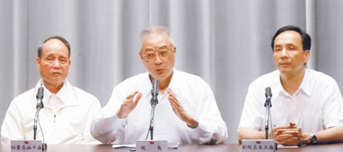 吳敦義(中)、朱立倫(右)與林中森(左),曾被視為臺當局行政主管部門鐵三角。(圖片來源于:臺灣《聯合報》)