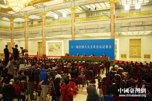 十一屆全國人大五次會議今天上午10時在人民大會堂三樓金色大廳舉行記者會。(中國臺灣網 王偉 攝)