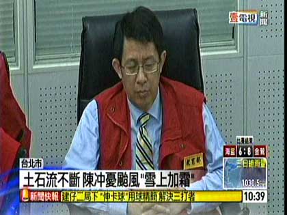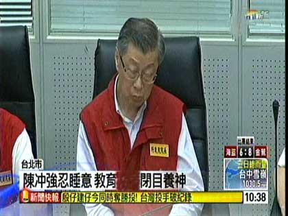 中國臺灣網6月13日消息 據臺灣媒體報道,連日豪雨臺灣各地災情嚴重,馬英九取消今日所有行程,到臺“中央災害應變中心”坐鎮指揮救災。報道稱,臺當局“行政院長”陳沖結束臺灣南部視察行程后,也到應變中心現場,不過可能是因為太過疲累,聽簡報時陳沖連打瞌睡、頻頻點頭,好幾次苦撐著睜眼,讓自己不要真的睡著。