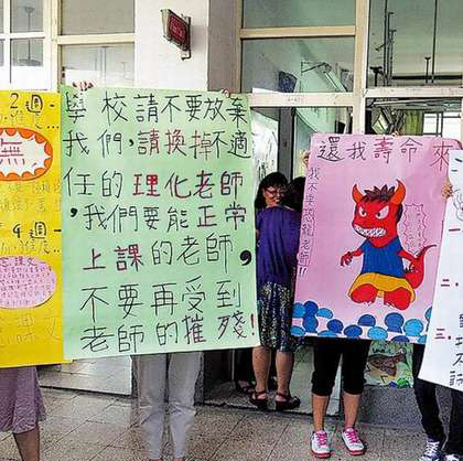 100多名家長昨天串聯(lián)抗議,要求學(xué)校立即撤換老師。(圖片來自臺媒)