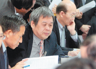 臺當(dāng)局“勞委會主委”潘世偉(左二)昨日表示,希望“勞委會”組織改造能在“修法”后進(jìn)行。(來源:臺灣《聯(lián)合報》)