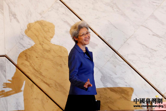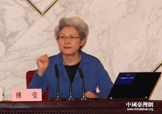 十二屆全國人大一次會議新聞發言人傅瑩就會議議程、人大工作向中外記者作了介紹。(中國臺灣網 何建峰 攝)
