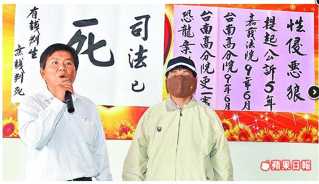 邱男更一審獲改判無罪,女會計的父親(右)出面為女兒喊冤。(圖片來自臺灣《蘋果日報》)
