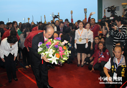 臺灣立法機構負責人王金平敬獻花籃(中國臺灣網 李典典 攝)