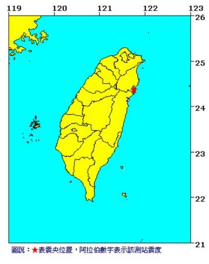 震央位于宜蘭縣南澳鄉,震源深度9.5公里。(圖片來自臺媒)