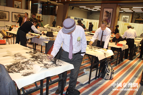 京臺書畫家共繪“兩岸情 中國夢”畫卷,圖為臺灣書畫家們認真創作。(中國臺灣網 郭慶娜 攝) 第1頁第2頁第3頁