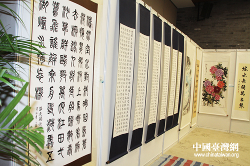 筆會同時進行展出的南臺灣書畫家作品。(中國臺灣網 郭慶娜 攝)