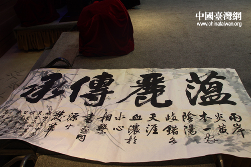 筆會上臺灣書畫家創作書法作品。(中國臺灣網 郭慶娜 攝)
