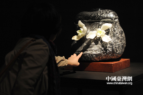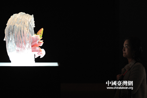 4月23日,中國美術(shù)館,《琉璃之人間探索——楊惠姍、張毅聯(lián)展》,觀眾不禁伸手感觸出神入化的琉璃作品。 (中國臺灣網(wǎng) 田云鵬 攝)