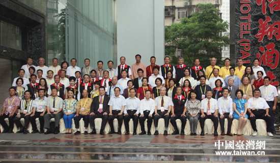 第五屆海峽論壇·致公懇談會(huì)由致公黨福建省委承辦,大陸和臺(tái)灣四個(gè)團(tuán)體協(xié)辦。來自兩岸的90余名嘉賓,其中包括來自臺(tái)灣十一個(gè)團(tuán)體的58名嘉賓參會(huì)。圖為兩岸部分嘉賓在會(huì)場(chǎng)外合影留念。(中國臺(tái)灣網(wǎng) 高斯斯 攝)