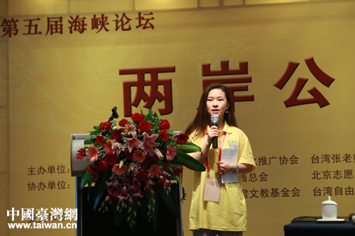 來自四川綿竹的舞蹈老師廖智在現場講述她的公益故事。(中國臺灣網 普燕 攝)