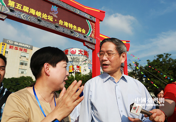 中國臺(tái)灣網(wǎng)6月16日廈門消息 今天下午,正在廈門參加第五屆海峽論壇的中臺(tái)辦主任張志軍來到臺(tái)灣特色廟會(huì),了解臺(tái)灣業(yè)者經(jīng)營情況,品嘗地道臺(tái)味小吃。 (中國臺(tái)灣網(wǎng) 田云鵬 攝)