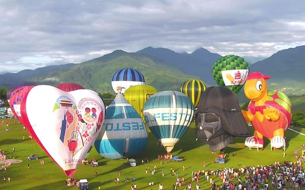鹿野高臺今天人聲鼎沸,包括黑武士、烏龜、乳牛等造型球都齊聚一堂。(圖片來自臺灣“中廣新聞網”)