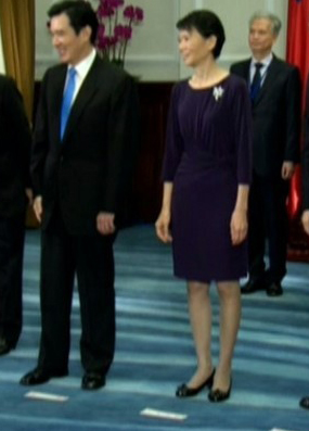 中國(guó)臺(tái)灣網(wǎng)10月10日消息 據(jù)臺(tái)灣媒體報(bào)道,今年臺(tái)灣地區(qū)舉辦的“雙十”活動(dòng),馬英九夫人周美青的服裝造型再度成為焦點(diǎn)。曾連續(xù)兩年穿同一件禮服的她,今年穿著新裝亮相,一身紫色及膝洋裝搭配胸針,散發(fā)典雅氣息,曾為天王天后御用造型師的陳孫華稱贊“有進(jìn)步”,不過,他也認(rèn)為,深色洋裝比較適合晚宴穿,淡妝和服貼的頭發(fā)讓她看起來沒精神,至于馬英九的妝則化的有些濃。