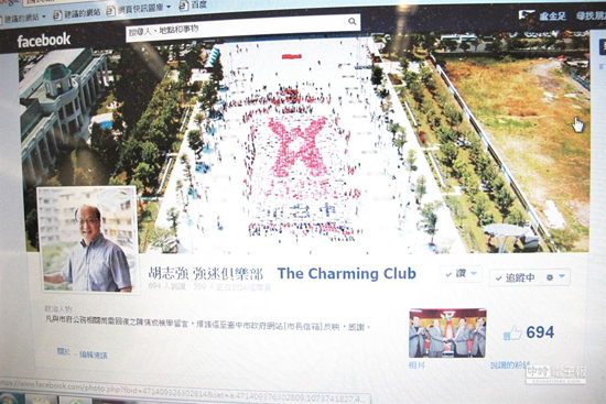 臺中市長胡志強的臉書開張,吸引網(wǎng)友加入“強迷俱樂部”。圖片來源:臺灣《中時電子報》