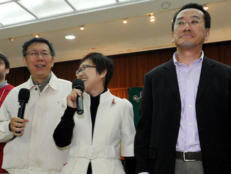 顧立雄、柯文哲出席臺北市議會活動神情各異(圖)