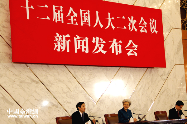 今天上午11時,十二屆全國人大二次會議在人民大會堂舉行新聞發布會。(中國臺灣網記者 高斯斯 攝)