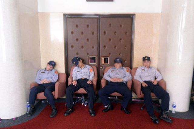 反服貿占領“立院”,警察累壞了。(臺媒圖)