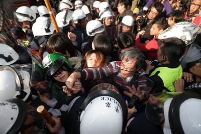 據報道,反服貿學生昨天離開“立法院”議場后,臺灣“公投盟”總召蔡丁貴等民眾在“立法院”前廣場聚集,持續抗議。中正一分局局長方仰寧凌晨受訪時原本表示柔性勸離,但清晨7時許展開驅離行動,蔡丁貴受傷送醫。民眾因此發起包圍警察局活動。