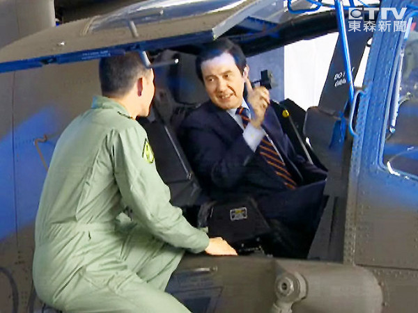 馬英九試乘阿帕奇直升機。(圖片取自臺媒)