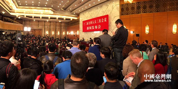 第十二屆全國人大第三次會議4日舉行首場新聞發布會,圖為新聞發布會現場記者云集(中國臺灣網 高斯斯 攝)
