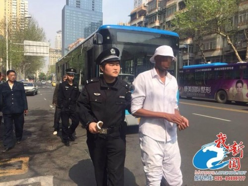 老外南京公交車上險滑倒被扶起后肆意撒尿